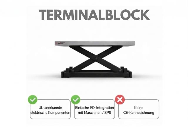 - UL Terminal Block Package: Der Hubtisch / die Konstruktion ist nicht als komplette Einheit CE-gekennzeichnet