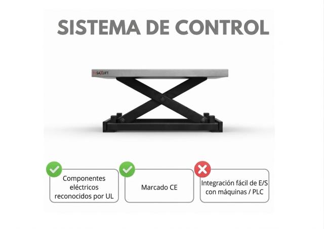 Esta solución es ideal para aplicaciones industriales donde la mesa elevadora forma parte de un sistema más grande y es controlada por la plataforma de control existente del cliente.