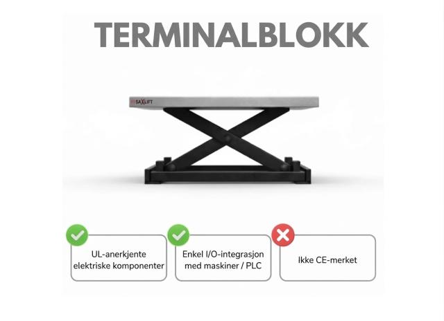• UL Terminal Block Package: Løftebordet / konstruksjonen er ikke CE-merket som en komplett enhet