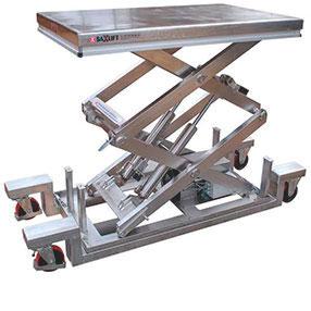 Unsere Edelstahl-Produktpalette umfasst stationäre Hubtische und mobile Hubtischwagen