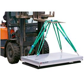 Verschieben des Hubtisches mit einem Kran oder einem Gabelstapler unter Verwendung von Ringschrauben